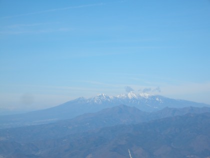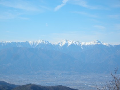 【南アルプス連峰も頂きは雪で真っ白】