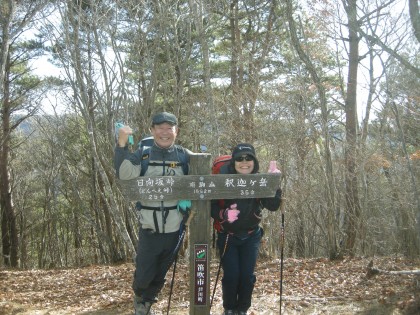 山梨百名山のひとつ釈迦岳(1641m)へ登頂できたのは丁度の正午だった。甲府市内のコンビニで買った幕の内弁当とお魚ソーセージだが、360度展望の山頂で食べる弁当の美味しさも格別で、まさに頂点だ(^^♪![DSCN1752[1]](https://www.h-d-kameido.com/wp-test/wp-content/uploads/old/2013/12/DSCN17521-420x315.jpg)