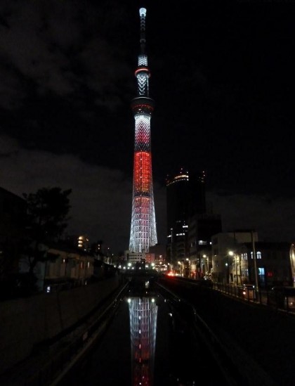 昨夜24日の東京スカイツリーのクリスマスバージョンの赤い色は、とてもキレイできらきらとロマンチックでした。もしも、見逃したなら今夜がラストチャンスです。暗やみに浮かぶツリーの美しさは絶景と云わずなんといおう。下町自慢がまた増えた。