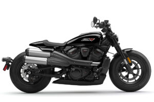 低く構えたフロントエンドと力強く跳ね上がるショットガンマフラーが印象的なスポーツスターS。