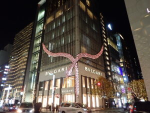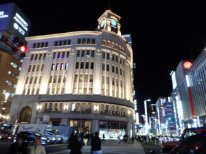 銀ブラは夜も続いているようで多くの人が行きかう。
