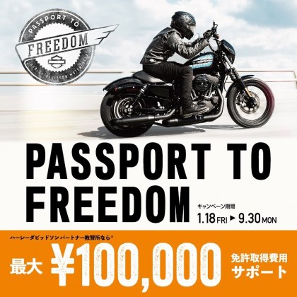 「パスポートtoフリーダムキャンペーン」とは、大型二輪免許取得費用10万円をハーレーダビッドソン購入に納車後キャッシュバックするというもの。事前にハーレーダビッドソン亀戸へお申し込みを頂き、パートナー自動車教習所を卒業され、運転免許証を手にする。