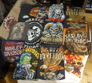 ハーレーダビッドソン亀戸オリジナルTシャツは、年間を通して販売数は安定している。
