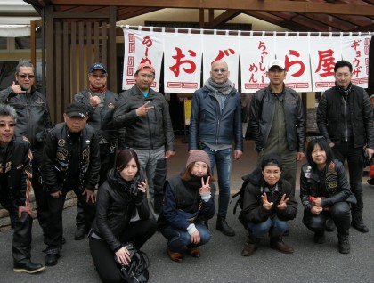 美味いお昼を一緒に(^^♪…そう云って集まった亀戸のハーレー仲間たち。当店の開店以来、30年間グルメツーリングで、ラーメンランチをツーリング目的地とするのは「佐野ラーメン・おぐら屋」だけ。