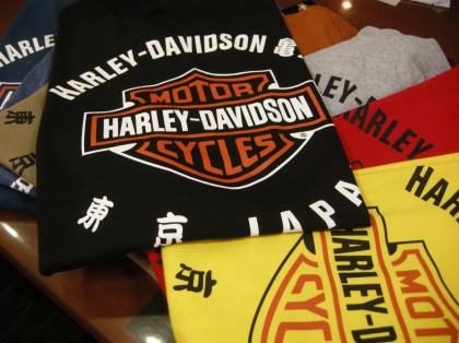 日本へ旅行にやって来たおみやげに、外国人観光客の方々から、ハーレーダビッドソン亀戸のオリジナルTシャツが好評をいただいています。
