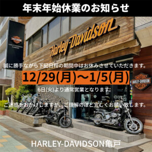 ハーレーダビッドソン亀戸、今年の営業も明日12月28日(日)が最終日となりました。