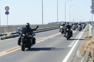 【霞ケ浦大橋を渡るツーリンググループ】