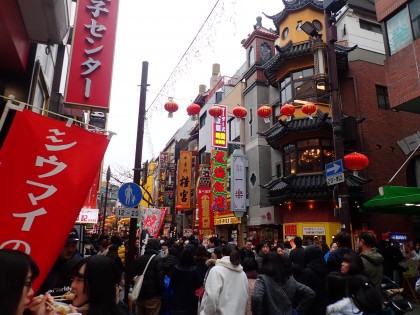 海員閣で満腹になり、おもてに出ると、中国のお正月「春節」と関係があるのか、もの凄い人波が中華街を埋め尽くしていた。発泡スチロールのお椀を持ち、飲茶や中華スープを立ち食いしたりしてる若者たちのなんと多いことか。