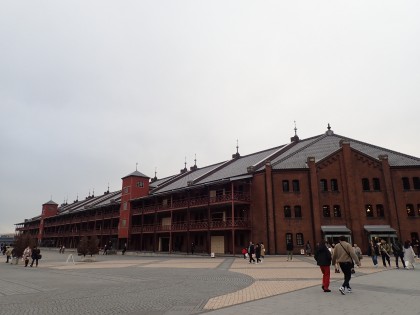ハーレーダビッドソンの展示会をこのレンガ倉庫で時々開催している。2月の海風はまだ冷たい。