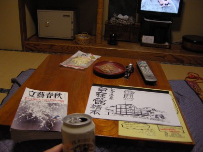 普段はめったに見ない大相撲、のどかな気分でテレビに見た。こたつでビールを飲みつつ裂きするめを肴に至福のひとときだ。山間の秘湯の宿は個人経営、ここは、ビールもおつまみも全て旅館のものを買っていただくことで喜ばれる。