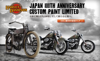 本日より発売です。1913年(大正2年)、100年前ニッポンへ初めて「ハーレーダビッドソン」が横浜港に荷揚げされ上陸しました。節目となる100年を記念して、2013モデルから限定カラーリングを施し記念モデルを発売しました。希少な1台として羨望の目が注がれることでしょう。