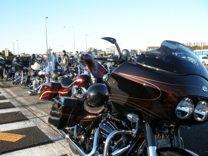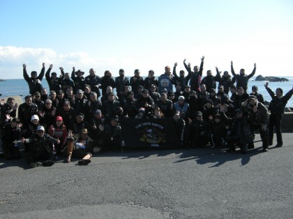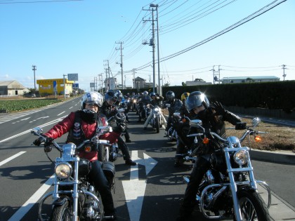 HOG・東東京チャプターのオフィシャルイベント「2013・新春ツーリングIn銚子港」を本日開催。1月20日現在でメンバーはすでに95名。そのうち71名の参加を戴き、集合場所の京葉道・幕張PAは早朝8時には亀戸のハーレーオーナーで埋め尽くされました。