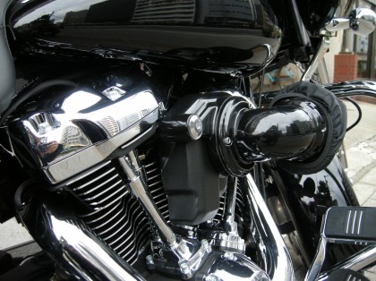 パワーアップを狙って吸気系をカスタマイズ。効果はテキメン、ノーマルでさえも向上した加速感には驚いたが、吸気音のせいか心地よい更なる怒涛の加速を体感した。なおこのスクリーミーイーグル・大口径エアークリーナーはハーレーダビッドソン純正。価格は¥80000で販売されている。