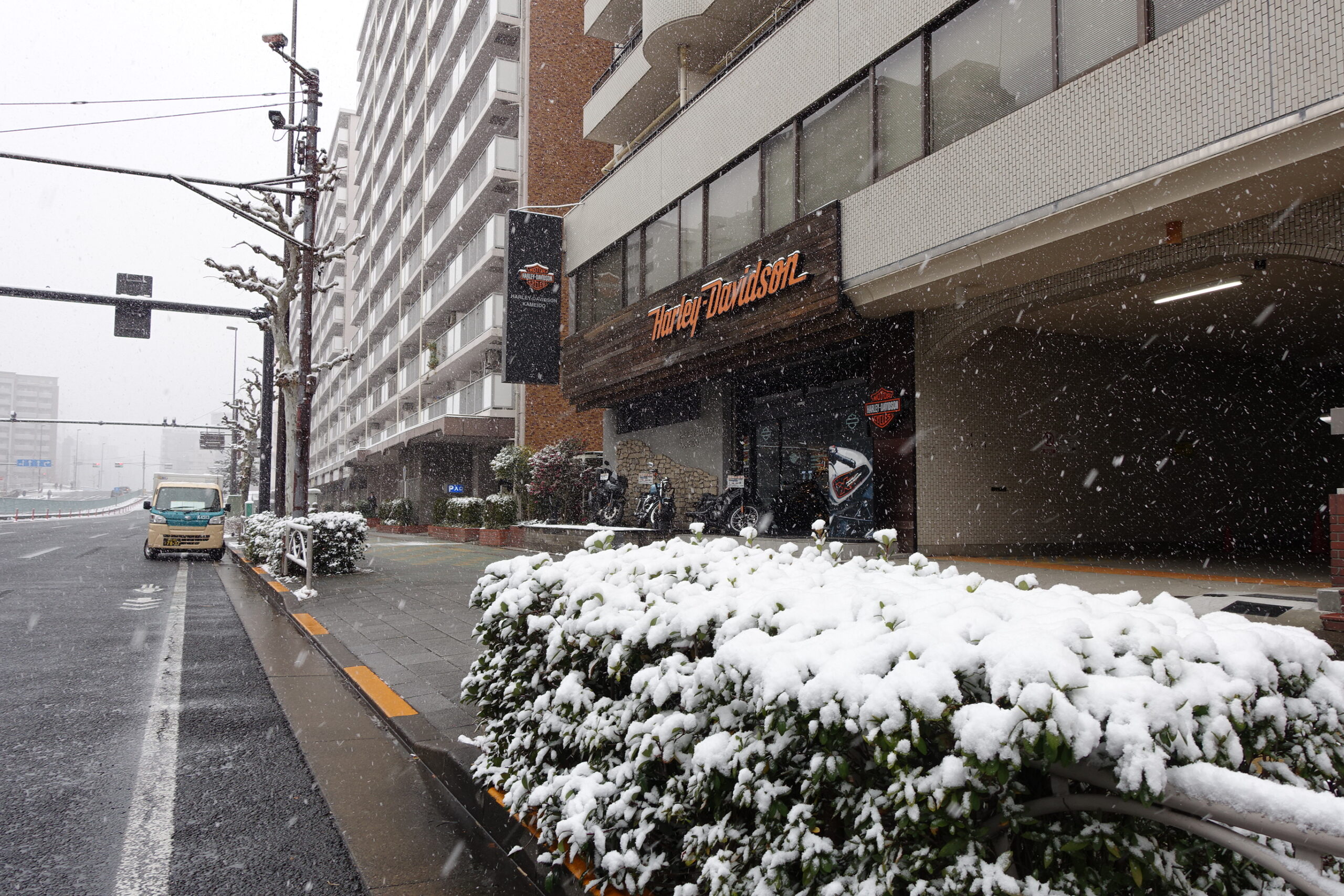 雪化粧のHARLEY-DAVIDSON亀戸です(^^♪