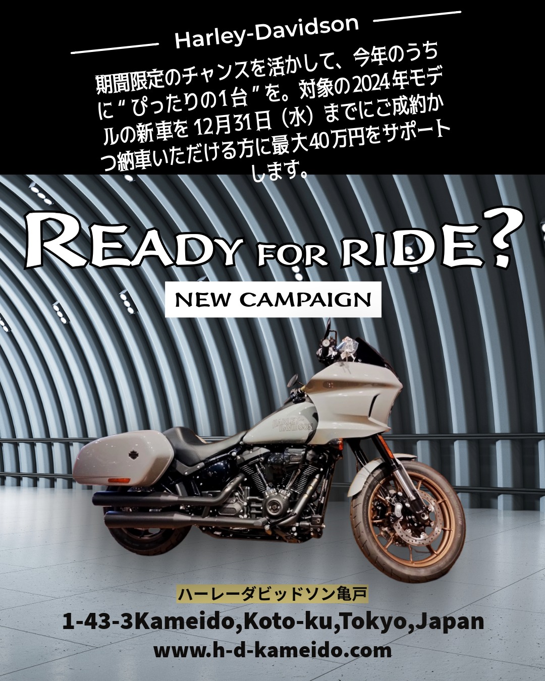 READY FOR RIDE最大40万円のチャンスを今年のうちに!
