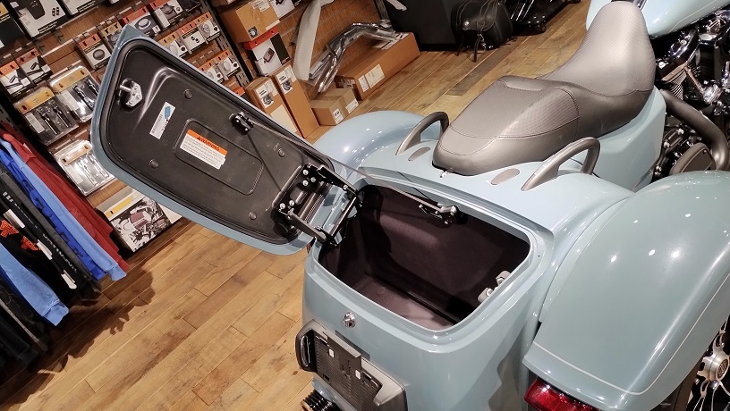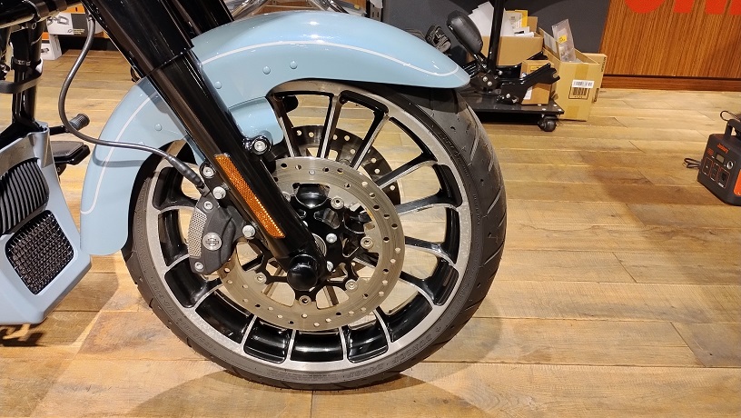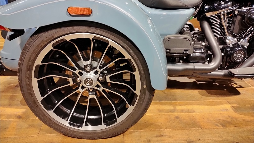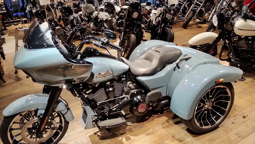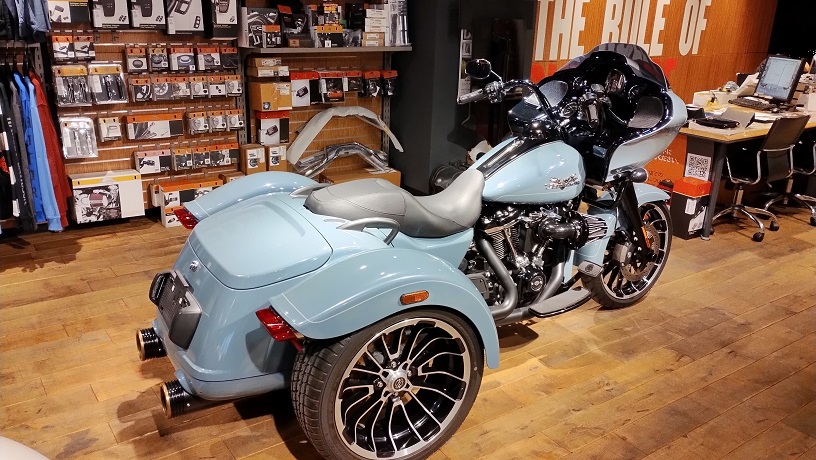 2023年にデビューを果たした、ロードグライドのトライク。フロント19インチ、リア18インチの大径ホイールを標準装備し、トライグライドウルトラに比べて精悍なスタイルとなっています。